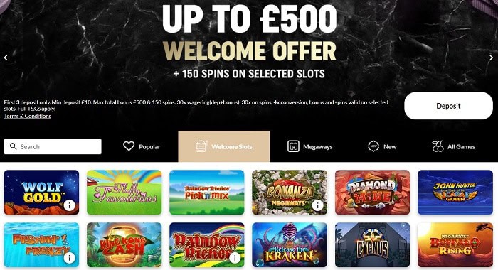 Royal Valley offers a generous three-part welcome bonus offer for all newcomers. The bonus is laid out between three deposits when you sign up as a new player to Royal Valley. The total bonus amount can add up to ₤500, and 150 free spins in total. The free spins are valid to use on the following three popular slots: Starburst, Aloha! Cluster Pays, or Finn and the Swirly Spin. Please keep in mind the T&Cs that come along with it; check this out on their website.