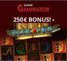 Register your account with Super Gaminator Casino for free and start playing the best slot machines! As a new player you will get an exclusive welcome bonus of 100% up to €250. This promotion is available on first real money deposit. For example. deposit 200€ and play boost your bankroll up to 400€. You can use the bonus money on any game at Super Gaminator Casino lobby.